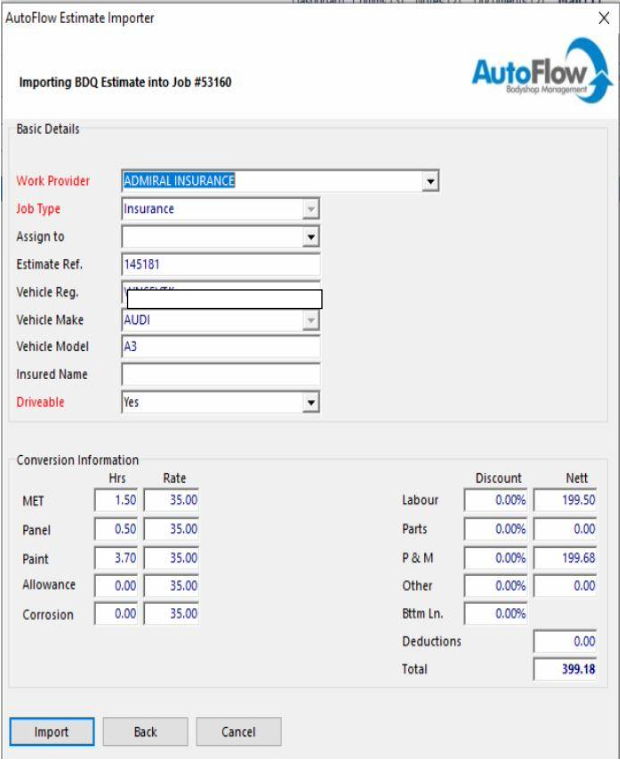 Finally, we recommend checking the estimate totals match your authority, if this is the case then you can select Import. This estimate can now be found within AutoFlow!