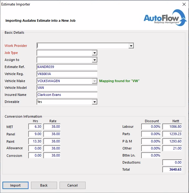 This will require you to go through the same steps as a manual notification but will populate the relevant boxes with the information from the estimating system. Your estimating system should be linked with AutoFlow. Once you have selected the estimating system, this will take you through to a list of jobs.